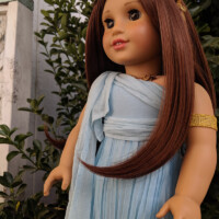 Sweet Athena, my third custom American Girl, Greek Goddess of Wisdom. She has a dark auburn wig from ZaZou Dolls on etsy, her outfit is a halloween costume from American Girl. She’s been repainted as well, giving her a unique look among dolls sharing her face mold.