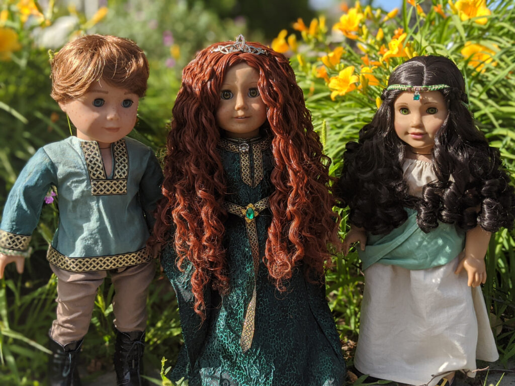 Celtic Princess Sorcha, one of my custom American Girls, previously Just Like You doll #3. Sorcha has a new wig from ZaZou Dolls over on Etsy and new green eyes to match, her Celtic gown from Carpatina-Dolls along with her circlet/tiara. Her staff is hand made from paper, hot glue and a real Amethyst fragment.